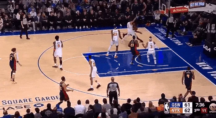 24/25赛季NBA风云突变!库里接球三分强投再中,勇士反超尼克斯2分